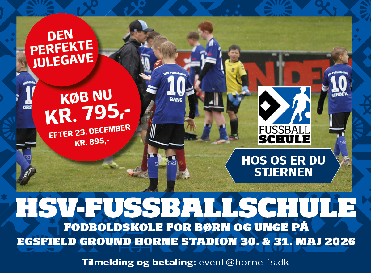 HSV-Fodboldskole kommer nemlig til Horne igen, 30. & 31. maj 2026 hvor deltagerne virkelig kan se frem til 2 fantastiske fodbolddage hvor de blandt meget andet lærer tempo-driblinger, taktiske finter og øvelser og ikke mindst nye tricks på 2 spændende og inspirerende dage.